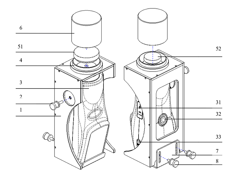 4、根據樣品特點,選取适當(dāng)容量的樣品杯(Φ60mm樣品杯51、Φ35mm樣品杯52均可使用),将待測(cè)樣品放入樣品杯,然後将裝有待測(cè)樣品的樣品杯的放入黑腔内,蓋上黑腔蓋闆6,按照測(cè)色儀的測(cè)試方法進行色度數據測(cè)量。